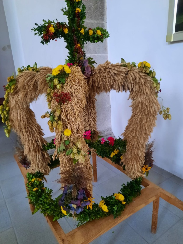 Dafür wurden von der Vorstandschaft schon am Samstag Vorbereitungen getroffen. Es wurden Erntesträußchen gebunden, die nach dem Gottesdienst verkauft wurden und auch die Erntekrone musste wieder schön geschmückt werden. Darum kümmerten sich Maria Koller und Wolfgang Karl in der Kirche.